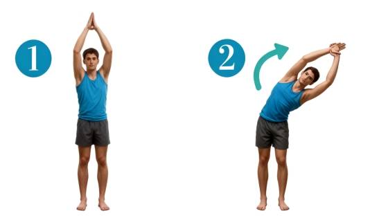 2. 借助左手的辅助,将身体向左侧充分伸展。